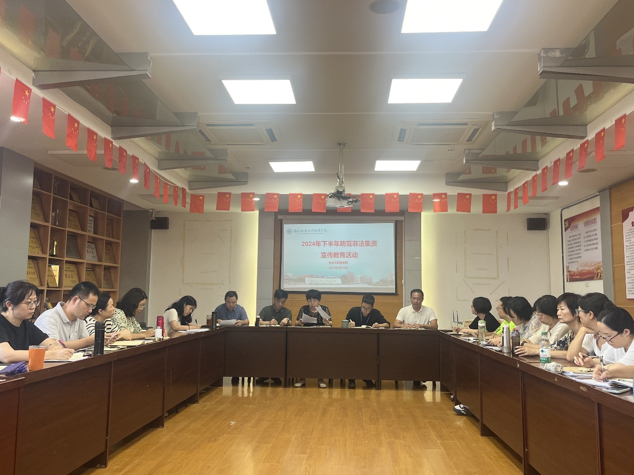 為進一步加大防范非法集資宣傳力度,切實維護安全與環(huán)境學(xué)院全體教職工生命財產(chǎn)安全,提高全體教職工對非法集資危害性的認(rèn)識,強化風(fēng)險意識和防范能力,培養(yǎng)正確投資理念,增強全體教職工防范非法集資的意識和能力。2024年9月18日下午,安全與環(huán)境學(xué)院開展2024年下半年防范非法集資宣傳教育活動。