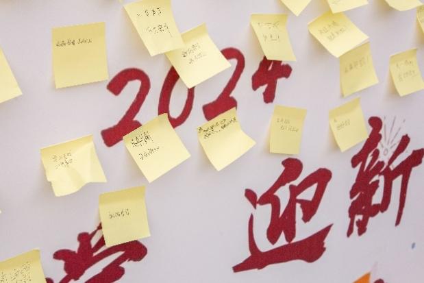 萌新們在報(bào)到區(qū)旁的“慶開學(xué),迎新生”主題展板,留言記錄下自己此時(shí)此刻的心情,或是對(duì)新生活的向往與期待。