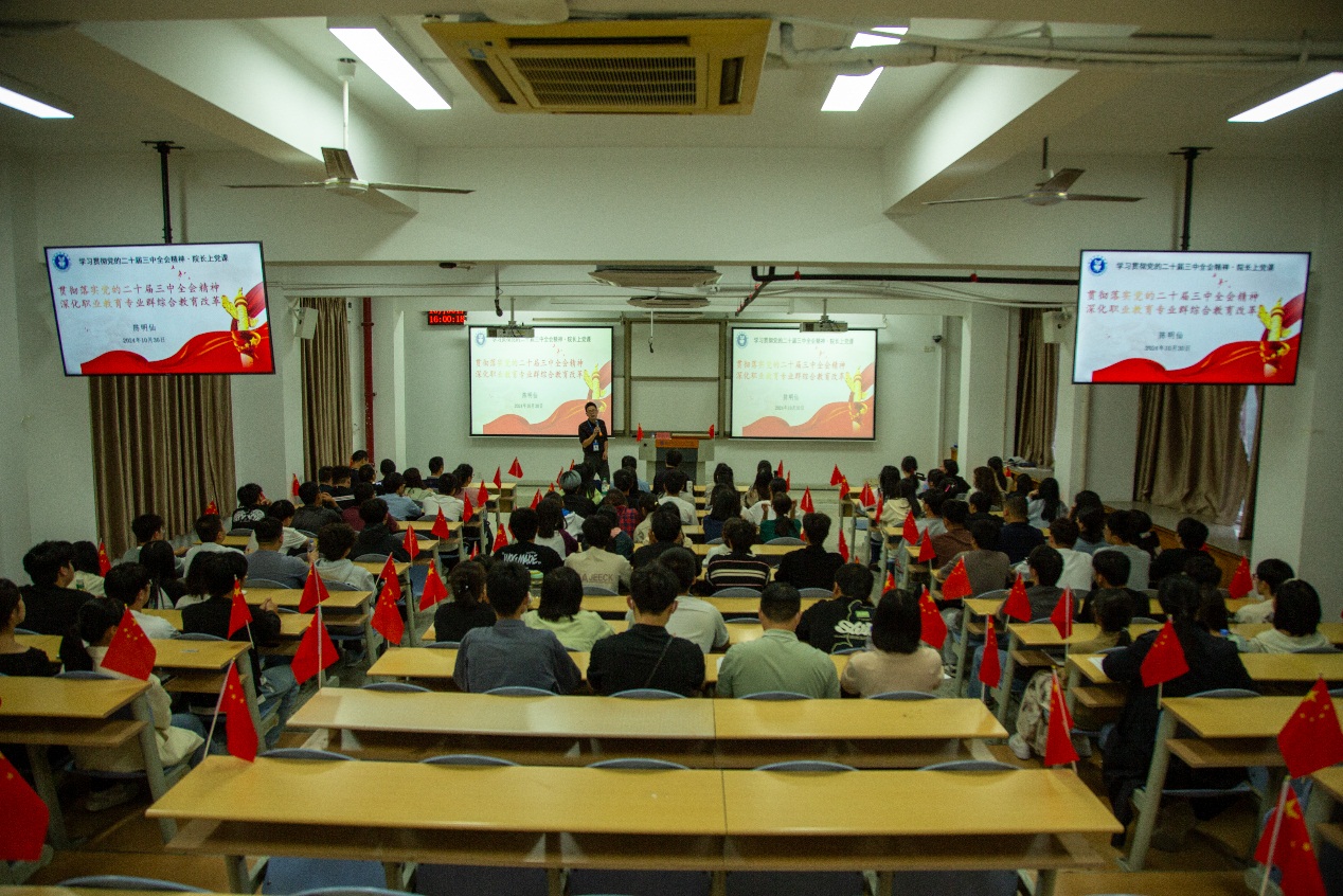 宣講會(huì)中師生積極互動(dòng),受益良多。教師黨員紛紛表示要將黨的二十屆三中全會(huì)精神貫徹到日常學(xué)習(xí)生活中,學(xué)習(xí)習(xí)近平總書記在全國教育大會(huì)上的講話精神,以更大的熱情投身教育事業(yè),以生為本,為強(qiáng)國建設(shè)、民族復(fù)興偉業(yè)貢獻(xiàn)自己一份力量。學(xué)生代表發(fā)言要以實(shí)際行動(dòng)踐行新時(shí)代賦予青年學(xué)生的歷史使命,深入學(xué)習(xí)黨的理論知識和專業(yè)知識,努力成為有理想、敢擔(dān)當(dāng)、能吃苦、肯奮斗的新時(shí)代好青年,學(xué)深學(xué)精專業(yè)技能為建設(shè)交通強(qiáng)國貢獻(xiàn)自己的青春智慧和力量。