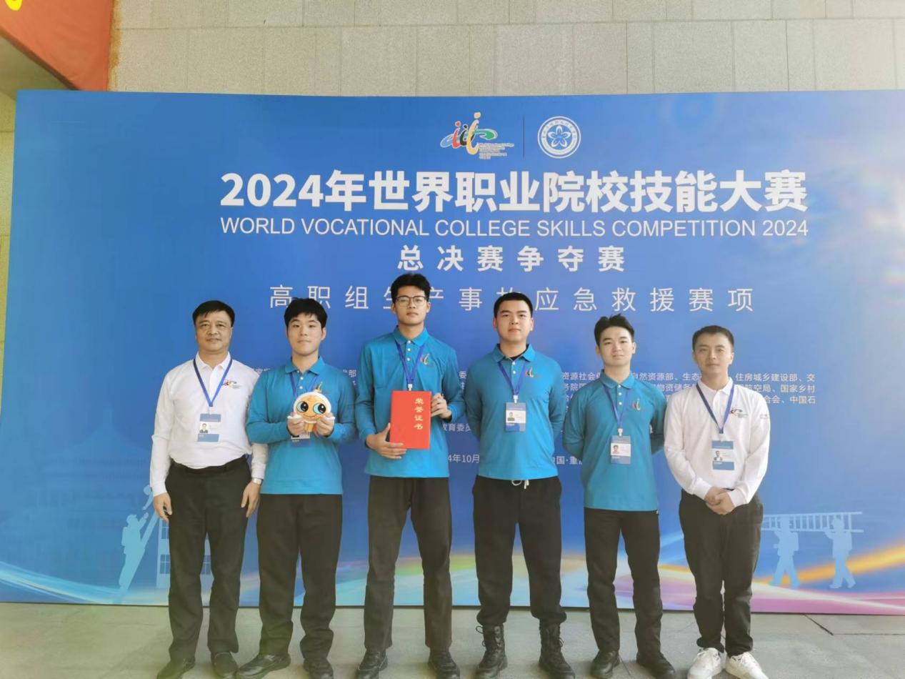 2024年世界職業(yè)院校技能大賽總決賽爭奪賽(高職組)資源環(huán)境與安全賽道生產(chǎn)事故應(yīng)急救援小組(賽項)于2024年10月25日至27日在重慶工程職業(yè)技術(shù)學院舉行,我院學生邱建平、魏國宏、黃義政和黃凌宇組成的參賽隊伍(指導(dǎo)老師:陳惠敏、張祝沐)喜獲“生產(chǎn)事故應(yīng)急救援”賽項銀獎。