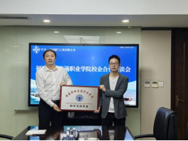在調(diào)研活動(dòng)中,安全與環(huán)境學(xué)院院長(zhǎng)與中交一公局廈門(mén)工程有限公司、中鐵二十二局集團(tuán)第三工程有限公司進(jìn)行校外實(shí)訓(xùn)基地揭牌儀式。