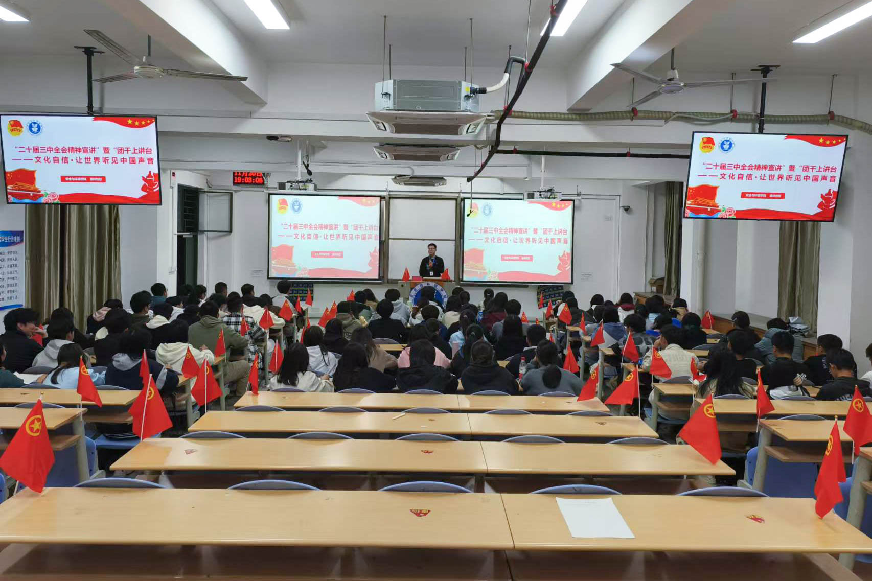 今天的青年乘時代春風(fēng),執(zhí)炬向前,綻放躍動。此次宣講活動使同學(xué)們不僅對黨的二十屆三中全會精神有了更加深刻的理解,而且增強(qiáng)了同學(xué)們的使命感和責(zé)任感,大家紛紛表示將以此次學(xué)習(xí)為契機(jī),不斷提高自己的思想政治覺悟,以更加飽滿的熱情和更高的標(biāo)準(zhǔn)要求自己,為實(shí)現(xiàn)中國式現(xiàn)代化貢獻(xiàn)青春力量。