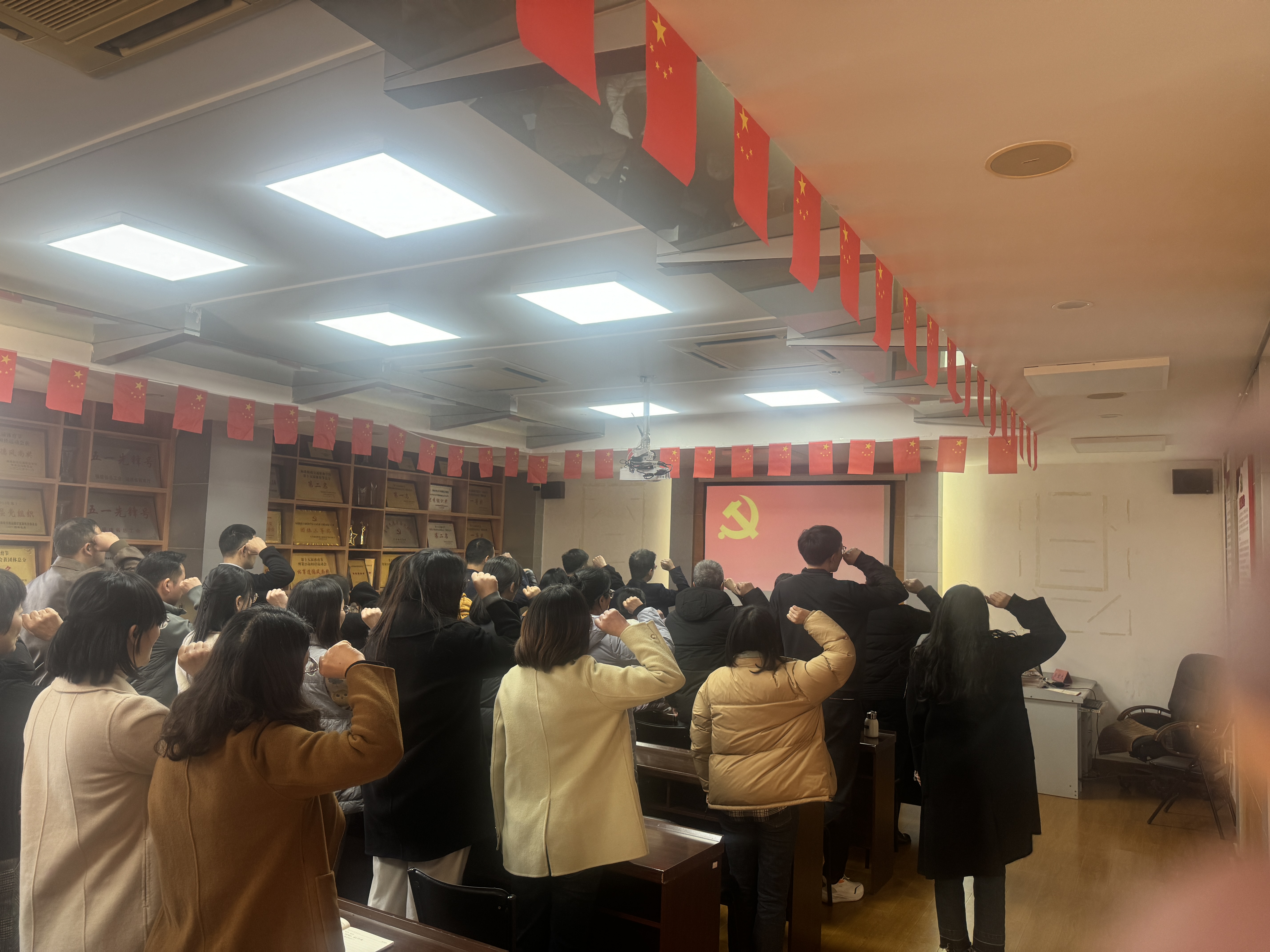伴著莊嚴(yán)的國歌聲,集體過“政治生日”主題黨日活動拉開了序幕。全體黨員在鄭雪琴書記的帶領(lǐng)下,重溫了入黨誓詞。那一句句鏗鏘有力的誓言,全體黨員仿佛又回到了第一次入黨時的情景。