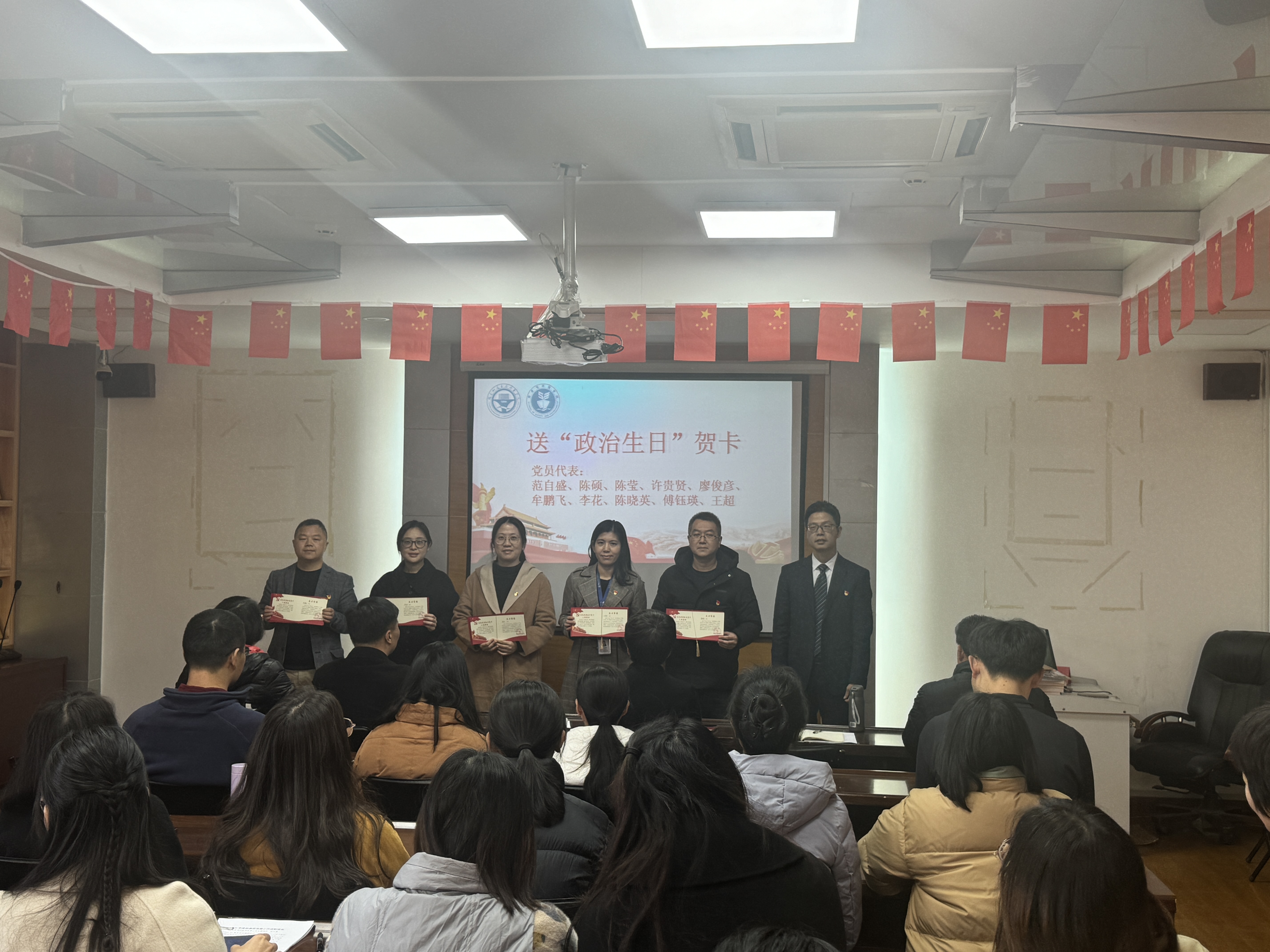 鄭雪琴書記和陳明仙院長為過“政治生日”的黨員同志贈送精心設(shè)計(jì)的“政治生日”賀卡,并送上了“政治生日”寄語。