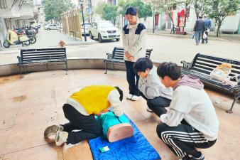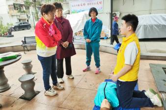 在急救救護(hù)科普活動(dòng)現(xiàn)場(chǎng),志愿者們向居民講解心肺復(fù)蘇救護(hù)和包扎的基本知識(shí)以及應(yīng)用環(huán)境,隨后居民們?cè)谥驹刚邆兊膮f(xié)助下進(jìn)行實(shí)操。通過(guò)在仿真人體模型上演示心肺復(fù)蘇救護(hù),真人練習(xí)繃帶包扎,讓居民們對(duì)急救知識(shí)有了更深刻的認(rèn)識(shí)與了解。