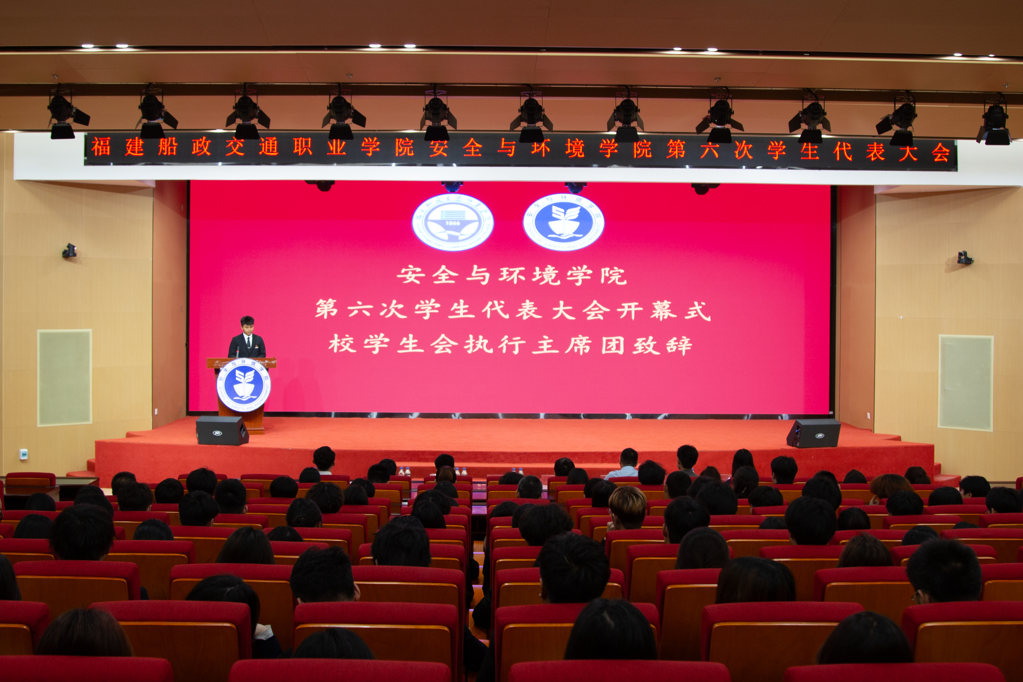 隨著國歌的奏響,此次參與會議的成員們一齊肅立,福建船政交通職業(yè)學院安全與環(huán)境學院第六次學生代表大會在激昂的國歌聲中正式拉開帷幕。大會的議程依次為院長陳明仙致辭,校學生會主席團成員許曉捷致辭,黃振南同學代表安全與環(huán)境學院第五屆學生委員會作工作報告,審議并通過《福建船政交通職業(yè)學院安全與環(huán)境學院學生會章程》(修訂案),選舉產(chǎn)生福建船政交通職業(yè)學院安全與環(huán)境學院第六屆學生會主席團成員,學院團委書記彭志允致閉幕詞。