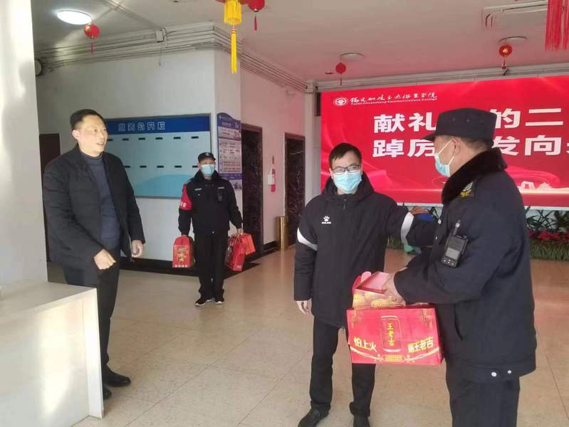 2023年1月19日上午,時值癸卯新年來臨之際,學(xué)院黨委副書記陳宜大攜安全保衛(wèi)處處長潘忠代表學(xué)校黨政,深入走訪慰問了寒假期間堅守崗位的一線工作人員,向他們的辛勤工作表示充分肯定,并送上新春的問候和祝福。
