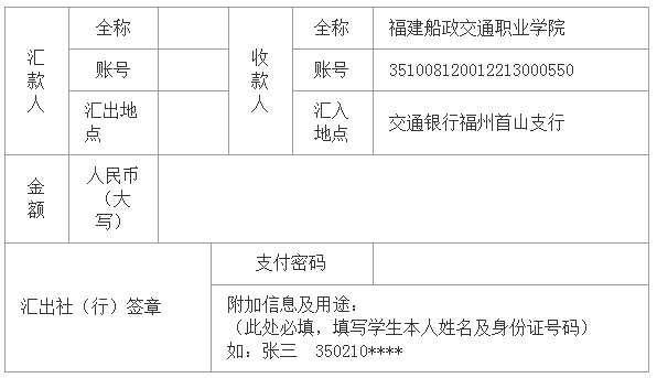 根據(jù)福建省財(cái)政廳有關(guān)部門的要求,學(xué)雜費(fèi)繳交實(shí)行票款分離制度。2013-2014級(jí)同學(xué)請(qǐng)于8月30日前通過當(dāng)?shù)劂y行營(yíng)業(yè)網(wǎng)點(diǎn)將應(yīng)繳款項(xiàng)存入郵政儲(chǔ)蓄卡內(nèi),我校將委托銀行于2015年8月31日從你的郵政儲(chǔ)蓄卡上統(tǒng)一代扣應(yīng)繳款項(xiàng)。