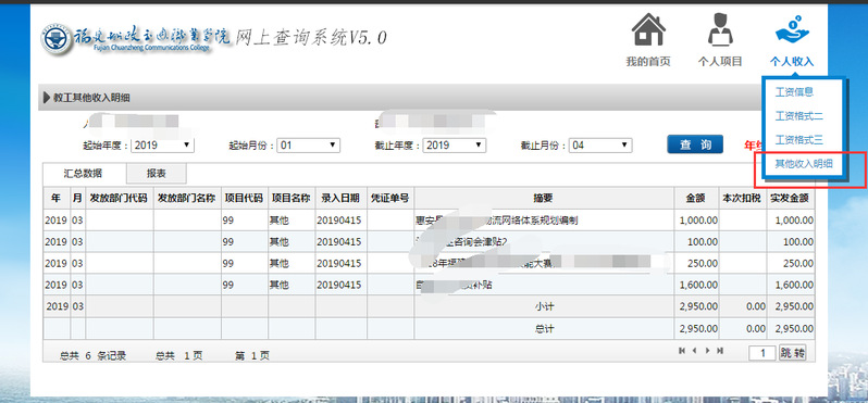 近日財(cái)務(wù)系統(tǒng)升級,增加了“其他補(bǔ)貼”明細(xì)查詢模塊,各位老師可以在自己的工資系統(tǒng)中查詢。信息更新時(shí)間為發(fā)放后1個(gè)工作日。