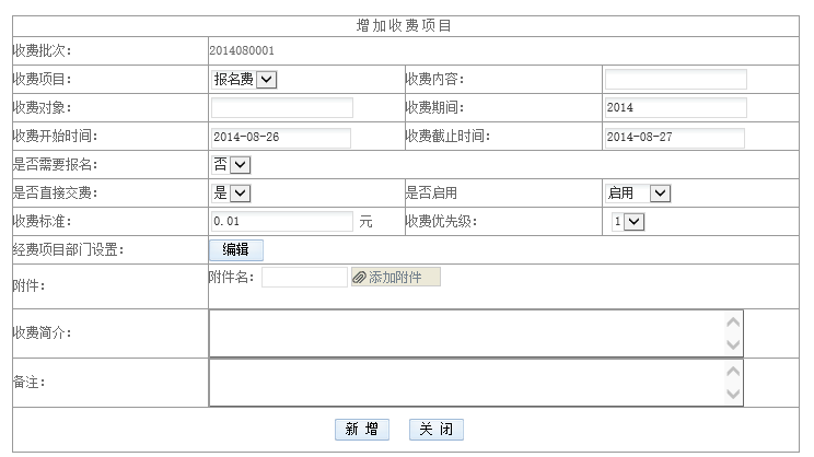收費(fèi)項(xiàng)目是收費(fèi)部門申請收費(fèi)批次的項(xiàng)目依據(jù),可以重復(fù)使用。