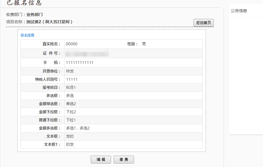 8)備注導(dǎo)入的繳費(fèi)人員在繳費(fèi)時(shí)能看到備注信息,以供確認(rèn)。