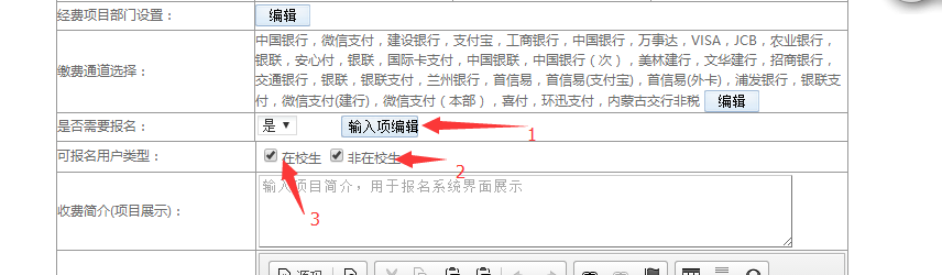 4.可進(jìn)行約束該項(xiàng)目是否允許在校生或非在校生進(jìn)行報(bào)名。