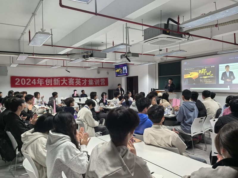 12月4日13:00至21:00,“創(chuàng)賽是一道證明題”2024創(chuàng)新大賽英才集訓營在藝新樓806舉辦。來自學校8個二級學院的90多位學生,進行為期一天兩場的集中密集培訓。