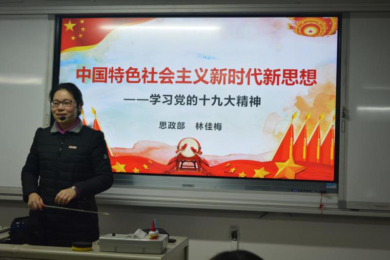 講座開始時,林佳梅老師深入淺出、旁征博引,從四個方面為全體學(xué)生做了精彩的宣講報告。她從經(jīng)濟(jì)新常態(tài)、意識形態(tài)等領(lǐng)域,總結(jié)了十八大的成就,幫助大家進(jìn)一步認(rèn)清了十九大召開的時代背景,概括總結(jié)了近年來國家經(jīng)濟(jì)型社會發(fā)展取得的輝煌成就,深入分析了當(dāng)前社會發(fā)展面臨的重要機(jī)遇,深刻闡述了如何堅(jiān)定理想信念、樹立“四個自信”,使學(xué)生們?yōu)閲业目焖侔l(fā)展而自豪。林佳梅老師還告訴我們,黨的十九大會議,是在全面建成小康社會決勝階段、中國特色社會主義發(fā)展關(guān)鍵時期召開的一次十分重要的大會。它承擔(dān)著謀劃決策、全面建成小康社會、深入推進(jìn)社會主義現(xiàn)代化建設(shè)的重大任務(wù),它的召開關(guān)系著黨和國家事業(yè)能否蒸蒸日上,關(guān)系著中國特色社會主義前途命運(yùn),關(guān)系著廣大人民最根本的利益,而這些內(nèi)容正是與我們的生活所息息相關(guān)的。