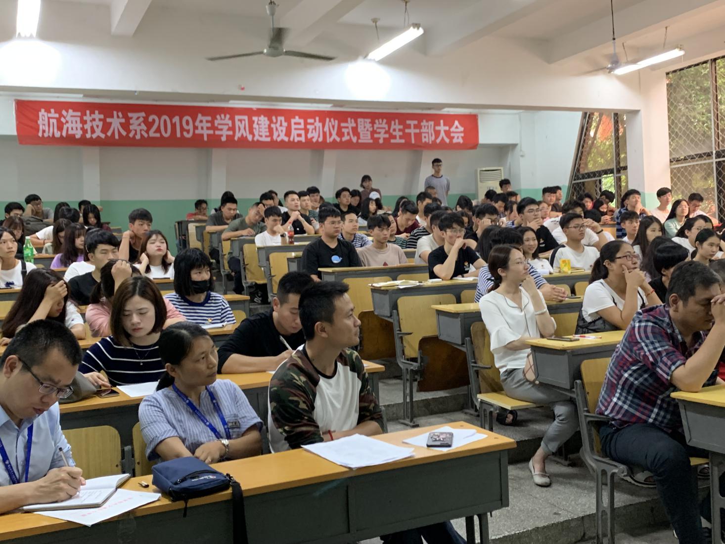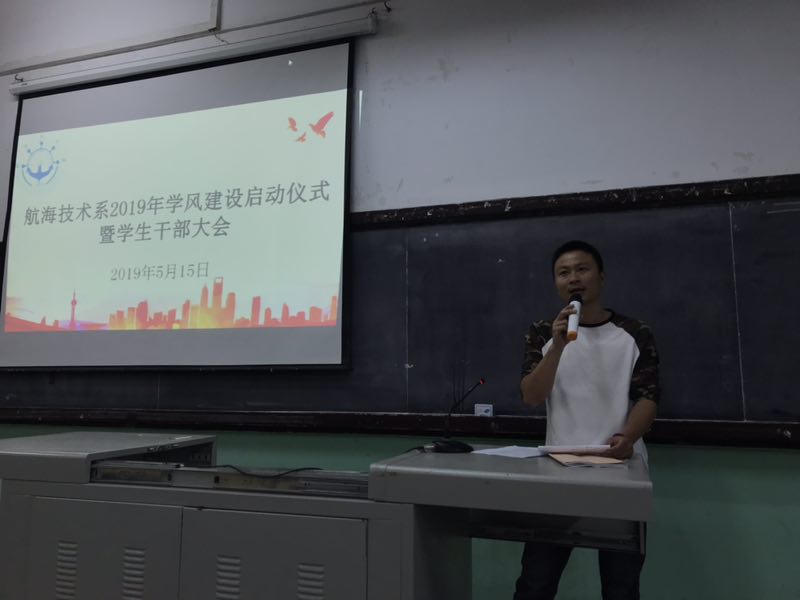 為深入學(xué)習(xí)貫徹落實(shí)習(xí)近平新時(shí)代中國(guó)特色社會(huì)主義思想和黨的十九大精神,切實(shí)加強(qiáng)學(xué)風(fēng)建設(shè),促進(jìn)學(xué)生學(xué)習(xí)與發(fā)展,5月15日下午兩點(diǎn),航海技術(shù)系在南區(qū)航東大舉行2019年學(xué)風(fēng)建設(shè)啟動(dòng)儀式暨學(xué)生干部大會(huì)。航海技術(shù)系主任江明光教授、副主任翁國(guó)玲副教授、團(tuán)總支書記林杰老師、各教研室主任、輔導(dǎo)員、班主任、團(tuán)委、學(xué)生會(huì)主要干部、各班班委、各宿舍舍長(zhǎng)參加了啟動(dòng)儀式。團(tuán)總支書記林杰老師主持啟動(dòng)儀式。