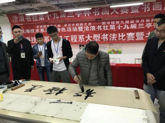 享閱讀書香之美,承百年船政之志。2019年3月30日早九點,在圖書館一樓自習室舉辦航海技術(shù)系系部特色活動暨滄浪書社第十九屆蘭亭杯書法大賽。出席本次活動有航海系團總支書記林杰老師、輪機系主任陳清彬老師及書法指導老師林祥庚老師。
