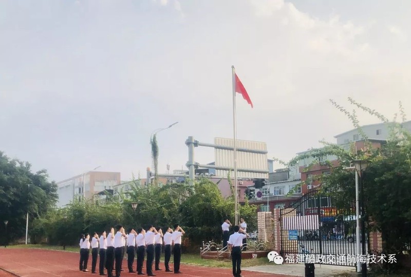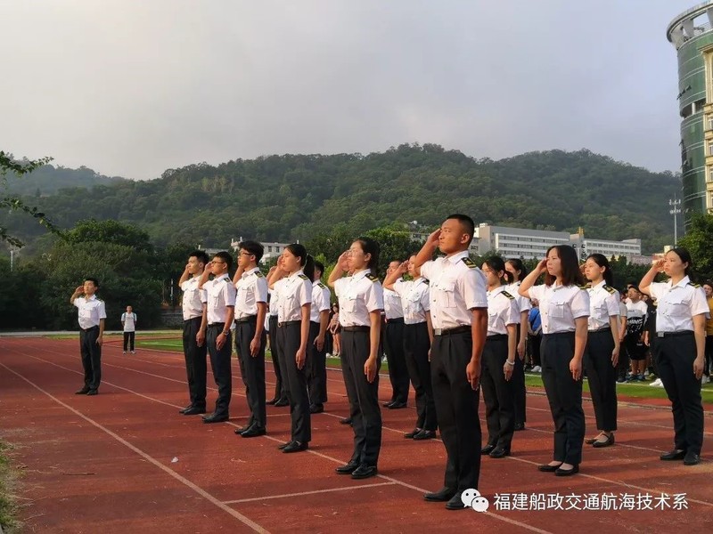 早晨7點(diǎn),航海技術(shù)系為新生們上了一堂特殊的愛國教育課——升旗儀式。