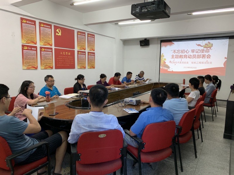 2019年9月20日下午,航海學(xué)院黨總支在校友樓四樓會(huì)議室召開(kāi)了“不忘初心、牢記使命”主題教育動(dòng)員部署會(huì),學(xué)院黨委巡回指導(dǎo)三組組長(zhǎng)謝翠紅及指導(dǎo)組成員,航海技術(shù)黨政負(fù)責(zé)人,全體教工黨員、學(xué)生黨員代表參會(huì)。會(huì)議由系主任江明光主持。