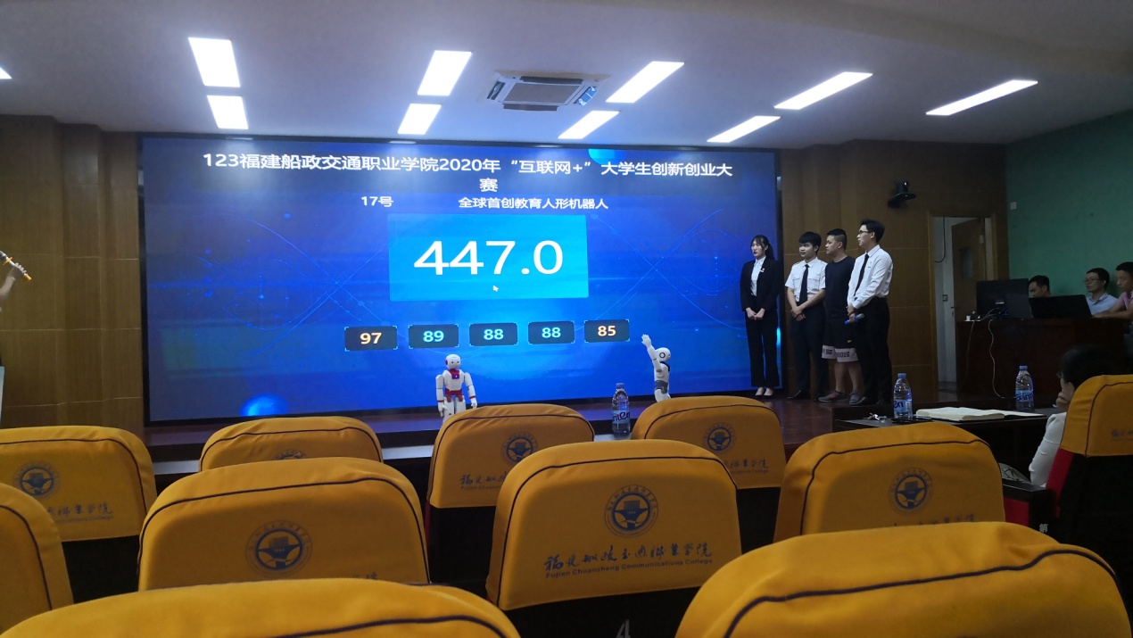 經(jīng)過(guò)激烈的網(wǎng)絡(luò)評(píng)審、現(xiàn)場(chǎng)答辯、線上評(píng)分。我系“福仔教育人形機(jī)器人”項(xiàng)目以447分榮獲校賽第一,“小柒當(dāng)家”項(xiàng)目以445分榮獲校賽第二。