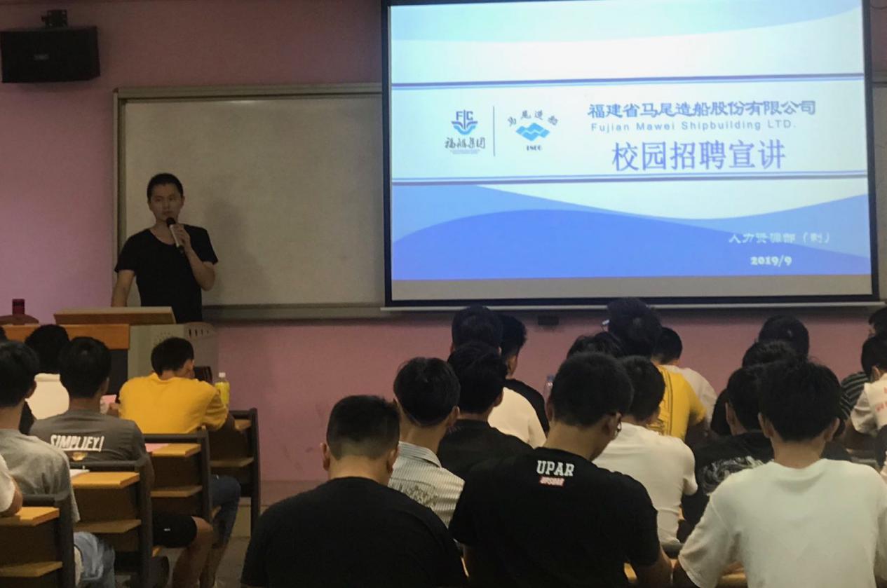 2019年9月25日下午,我系在南區(qū)31# 108教室召開福建馬尾造船股份有限公司專場(chǎng)招聘會(huì),本次招聘會(huì)主要面向我系2020屆船舶工程技術(shù)、船舶機(jī)械工程技術(shù)專業(yè)畢業(yè)生。
