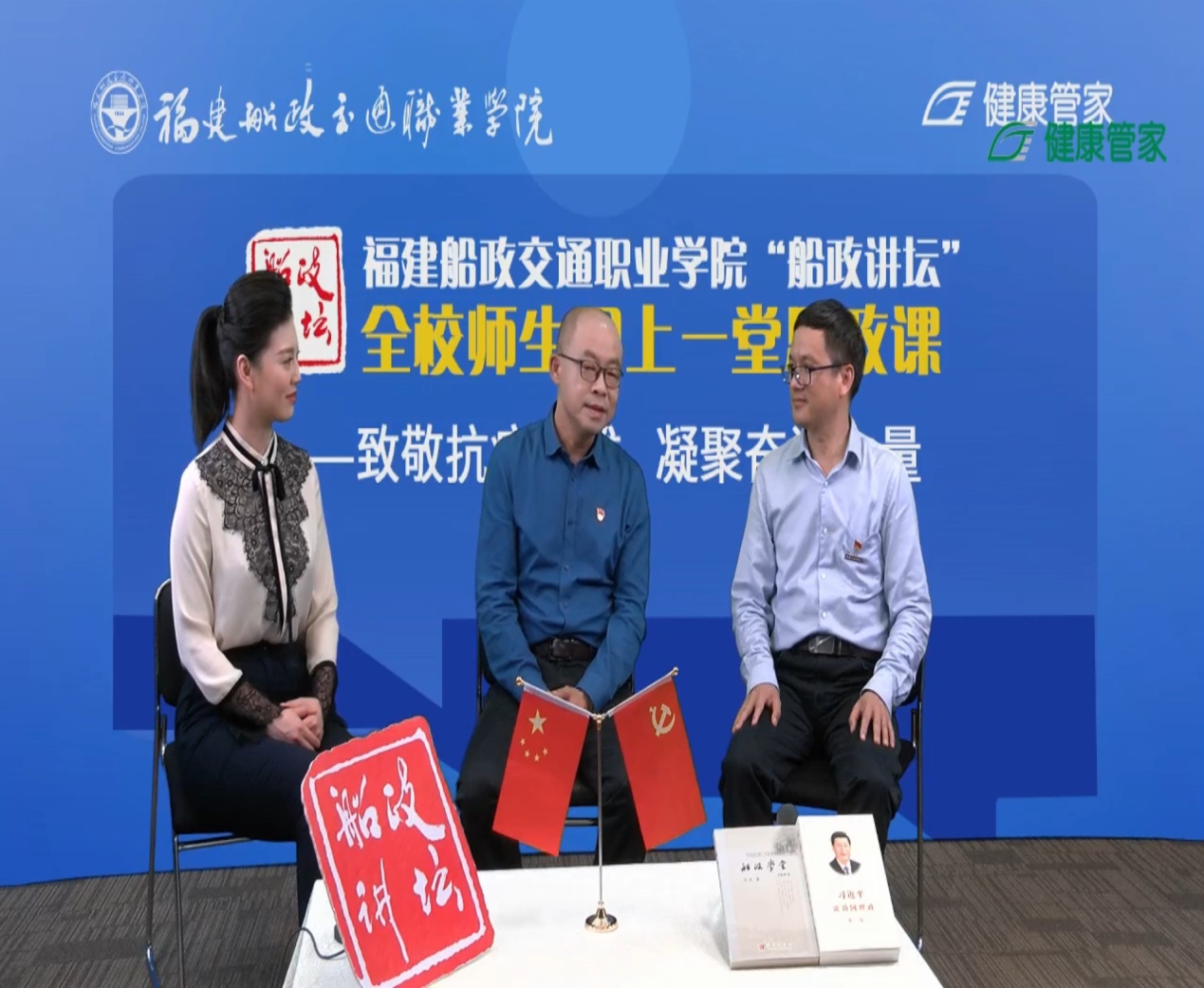 學(xué)院陳宜大副書(shū)記(右)與國(guó)家緊急醫(yī)療醫(yī)學(xué)救援(福建)隊(duì)支援武漢醫(yī)療隊(duì)領(lǐng)隊(duì)錢(qián)欣(中)做客“船政講壇”復(fù)學(xué)第一講。