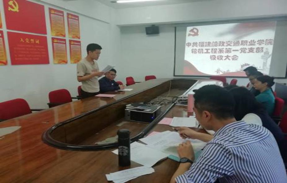 參加本次支部黨員大會的主要人員有:輪機工程系黨總支書記蔡平、輪機工程系主任陳清彬、輪機工程系第一黨支部書記吳建新、輪機工程系團總支書記謝小煌、輪機工程系輔導員王曉艷以及兩名發(fā)展對象鄭傳輝、林鴻銘。