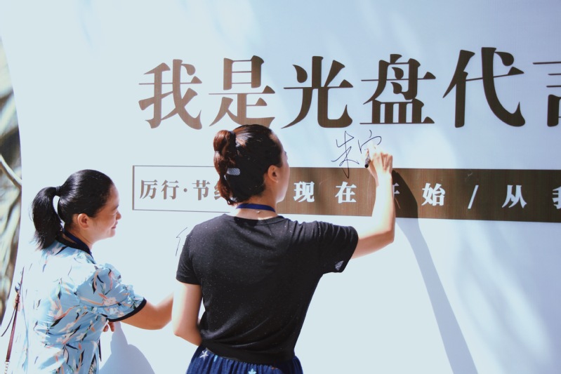 在儀式上,航海學院團委、土木工程學院團委、通用航空產業(yè)學院團委共同發(fā)布了“制止餐飲浪費,厲行勤儉節(jié)約”公益廣告。18級學生代表陳祈銘為全體師生介紹系列活動的具體內容。19級學生代表林舒鵬代表三院團委宣讀了“浪費可恥,節(jié)約為榮”致全院師生的倡議書。啟動儀式后,在場師生隨即加入到“我為‘光盤’代言”打卡活動中。全體師生在簽名墻上進行“厲行節(jié)約,反對浪費”簽名,并承諾“制止餐飲浪費,厲行勤儉節(jié)約”。