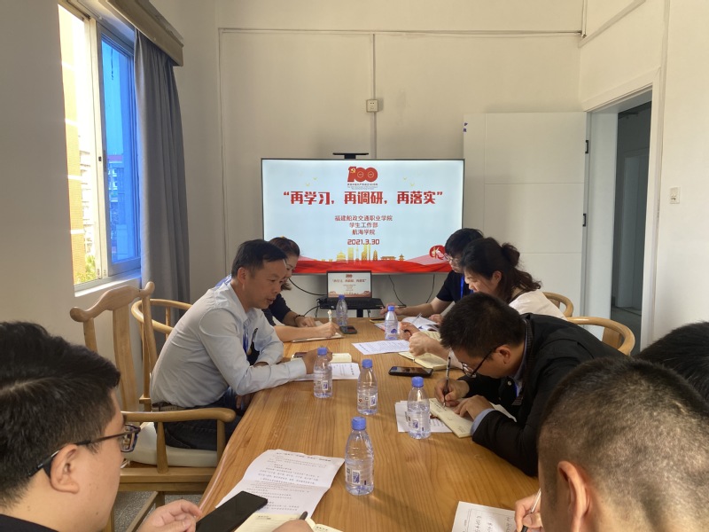 2021年3月30日,根據(jù)《中共福建船政交通職業(yè)學(xué)院委員會(huì)關(guān)于印發(fā)<“再學(xué)習(xí)、再調(diào)研、再落實(shí)”活動(dòng)方案>的通知》要求,我校學(xué)生工作部王心金處長(zhǎng)及部門相關(guān)工作人員實(shí)地走訪航海學(xué)院,開展“再學(xué)習(xí)、再調(diào)研、再落實(shí)”活動(dòng)。