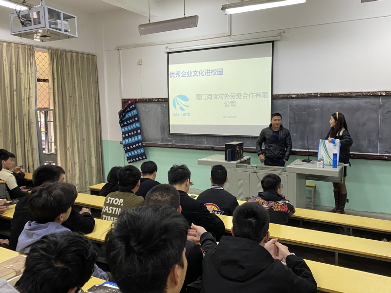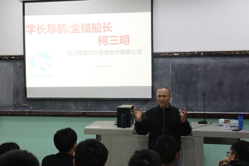 3月23日下午,廈門海隆對(duì)外勞務(wù)合作有限公司副總經(jīng)理林凱凌、船管部經(jīng)理柯三明、法務(wù)專員張悅文一行三人來(lái)到航海學(xué)院為2022屆航海類(航海技術(shù)專業(yè)、輪機(jī)工程技術(shù)專業(yè))學(xué)生做企業(yè)文化宣講。