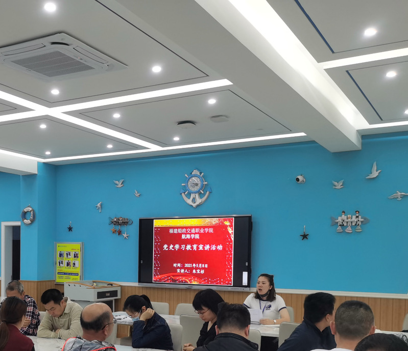 為進(jìn)一步貫徹落實(shí),習(xí)近平總書記在黨史學(xué)習(xí)教育動(dòng)員大會(huì)上的重要講話精神,扎實(shí)推進(jìn)學(xué)院黨史學(xué)習(xí)教育,獻(xiàn)禮中國(guó)共產(chǎn)中國(guó)共產(chǎn)黨成立100周年。2021年5月8日,航海學(xué)院黨總支副書記在五高實(shí)訓(xùn)中心開展黨史教育宣講活動(dòng),全體教職工參加宣講活動(dòng)。
