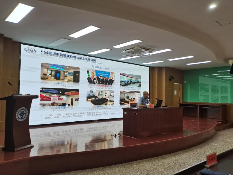 為加強(qiáng)高素質(zhì)船員隊(duì)伍建設(shè)、深化校企合作,6月22日上午,中遠(yuǎn)海運(yùn)船員管理有限公司上海分公司王國進(jìn)書記一行蒞臨我校。在北區(qū)1號(hào)樓學(xué)術(shù)報(bào)告廳為我院航海類專業(yè)學(xué)子做航運(yùn)企業(yè)宣講會(huì)。
