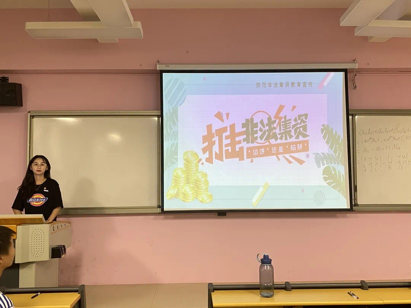 活動現(xiàn)場由20級競選助教的組長演講人員分場為同學(xué)們介紹了什么是非法集資,非法集資的定義,特征、基本類型和常見的手段,及其危害,通過簡單有趣的語言為同學(xué)們分析已成功查處并審結(jié)的典型案例,披露非法集資犯罪主體的經(jīng)營真相,揭露非法集資的手法伎倆,使學(xué)生們懂得識別金融風(fēng)險(xiǎn)、從而進(jìn)行自我保護(hù)。航海學(xué)院積極開展廣覆蓋、多樣化、深層次的宣傳活動。增強(qiáng)學(xué)生們的識別意識,提高防范、抵御非法集資活動的能力,培育其理性投資、風(fēng)險(xiǎn)自擔(dān)的正確概念,自覺遠(yuǎn)離非法集資的濃厚氛圍,從源頭上抵制非法集資高發(fā)蔓延的勢頭,有效遏制不法分子的違法犯罪行為。