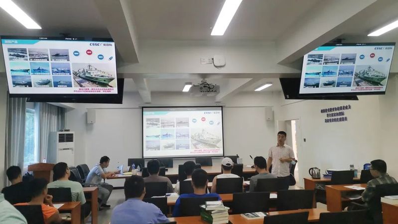 劉鳳斌主任從公司概況、公司福利、崗位需求以及入職手續(xù)四個方面詳細介紹了廣船國際有限公司的情況,并播放了企業(yè)宣傳片。“‘外學(xué)日韓,內(nèi)學(xué)廣船’的業(yè)內(nèi)俚語彰顯出公司在國內(nèi)艦船造修領(lǐng)域的市場地位。公司從1993年成功上市至今,已建成華南地區(qū)最大、最現(xiàn)代化的綜合艦船造修企業(yè)。目前的業(yè)務(wù)主要包括防務(wù)產(chǎn)業(yè)、船海產(chǎn)業(yè)和應(yīng)用產(chǎn)業(yè)三大板塊,核心的研發(fā)設(shè)計人員超過1000人……公司橫縱向人才發(fā)展通道健全,提供業(yè)務(wù)、管理、技術(shù)、生產(chǎn)等多種類崗位,崗位晉升空間大,并且包含定期體檢、五險一金、廣州戶口等豐富的央企福利保障。在專業(yè)需求方面,公司招收船舶制造與維修專業(yè)畢業(yè)生?!?/p>