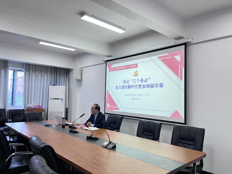 江文書記分享了黨的二十大報告及此后相關(guān)會議、相關(guān)材料,結(jié)合學(xué)院實際深入交流研討,引導(dǎo)廣大師生認真學(xué)習(xí)領(lǐng)會大會精神,深刻領(lǐng)會新時代新征程黨和國家事業(yè)的重大戰(zhàn)略部署。