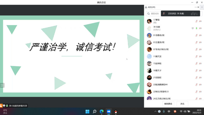 誠(chéng)實(shí)守信是中華民族的傳統(tǒng)美德,本學(xué)期也將迎來(lái)我們的期末考試。為加強(qiáng)學(xué)風(fēng)建設(shè),端正考風(fēng)考紀(jì),抵制考試作弊等不良風(fēng)氣,引導(dǎo)學(xué)生誠(chéng)信考試、誠(chéng)信做人。航海學(xué)院于近日組織各班學(xué)習(xí)委員面向各班級(jí)召開“嚴(yán)謹(jǐn)治學(xué),誠(chéng)信考試”主題班會(huì)。