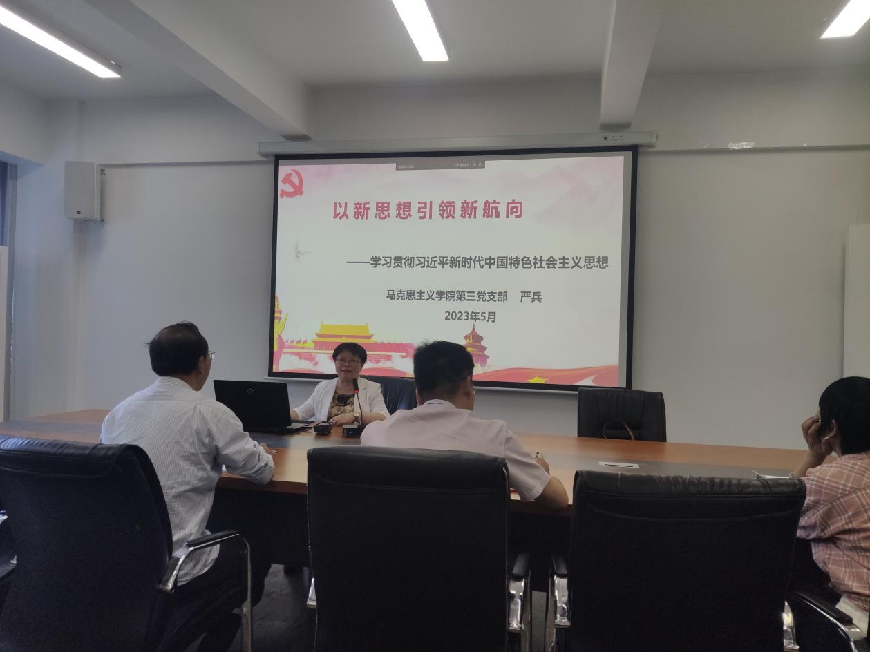 本次讀書班邀請到馬克思主義學(xué)院副教授嚴(yán)兵老師,以《以新思想引領(lǐng)新航向——學(xué)習(xí)貫徹習(xí)近平新時代中國特色社會主義思想》為題作讀書班專題輔導(dǎo)報(bào)告。