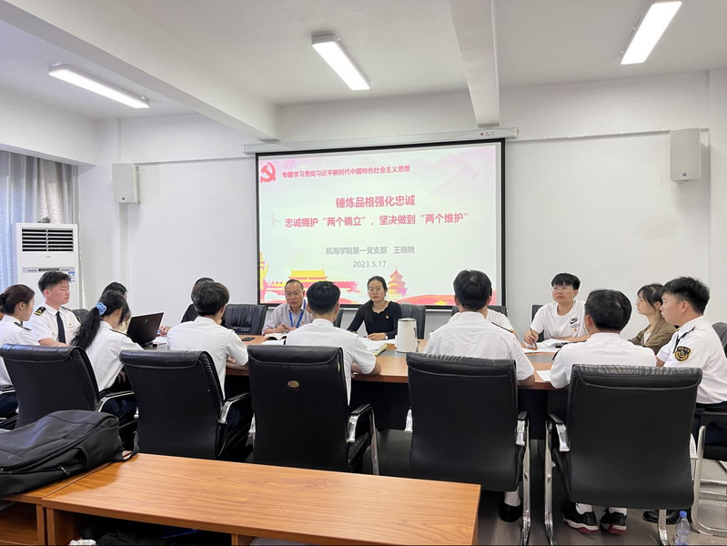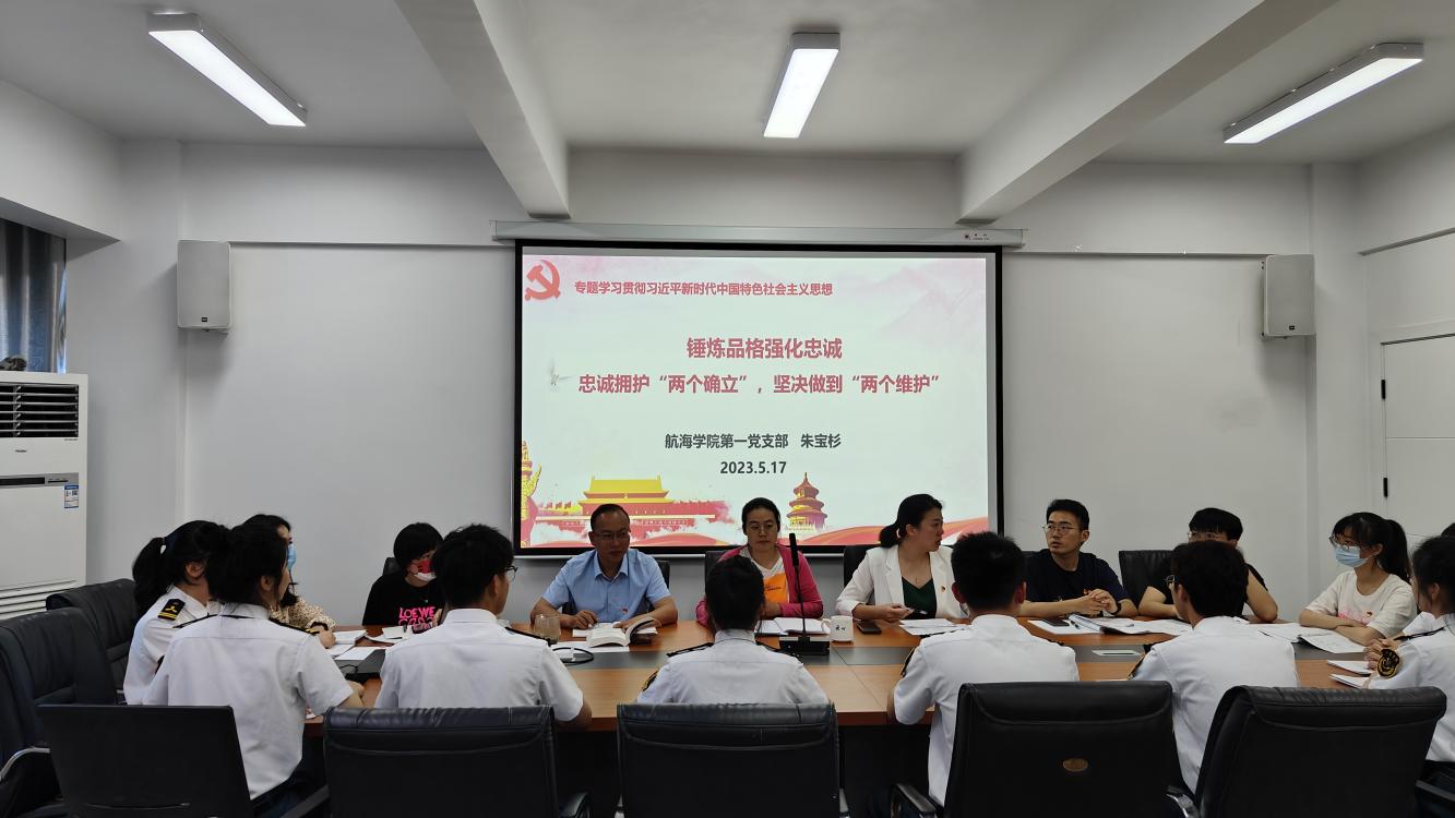 航海學(xué)院第一黨支部于2023年5月17日在校友樓307召開主題教育學(xué)習(xí),研討專題-錘煉品格強化忠誠——忠誠擁護“兩個確立”,堅決做到“兩個維護”,專題主要發(fā)言人為支部書記王曉艷和支部委員朱寶杉。