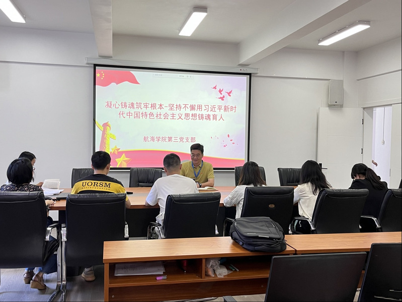 航海學(xué)院第三黨支部于2023年5月17日在校友樓307召開主題教育學(xué)習(xí),研討專題——凝心鑄魂筑牢根本-堅持不懈用習(xí)近平新時代中國特色社會主義思想鑄魂育人,專題主要發(fā)言人為支部書記李翼。主要發(fā)言學(xué)習(xí)內(nèi)容為堅定不移高舉中國特色社會主義偉大旗幟。黨和國家的長期實踐充分證明,只有社會主義才能救中國,只有中國特色社會主義才能發(fā)展中國。只有高舉中國特色社會主義偉大旗幟,才能團結(jié)帶領(lǐng)全黨全國各族人民全面建成小康社會,建成富強民主文明和諧的社會主義現(xiàn)代化國家,贏得中國人民和中華民族更加幸福美好的未來。