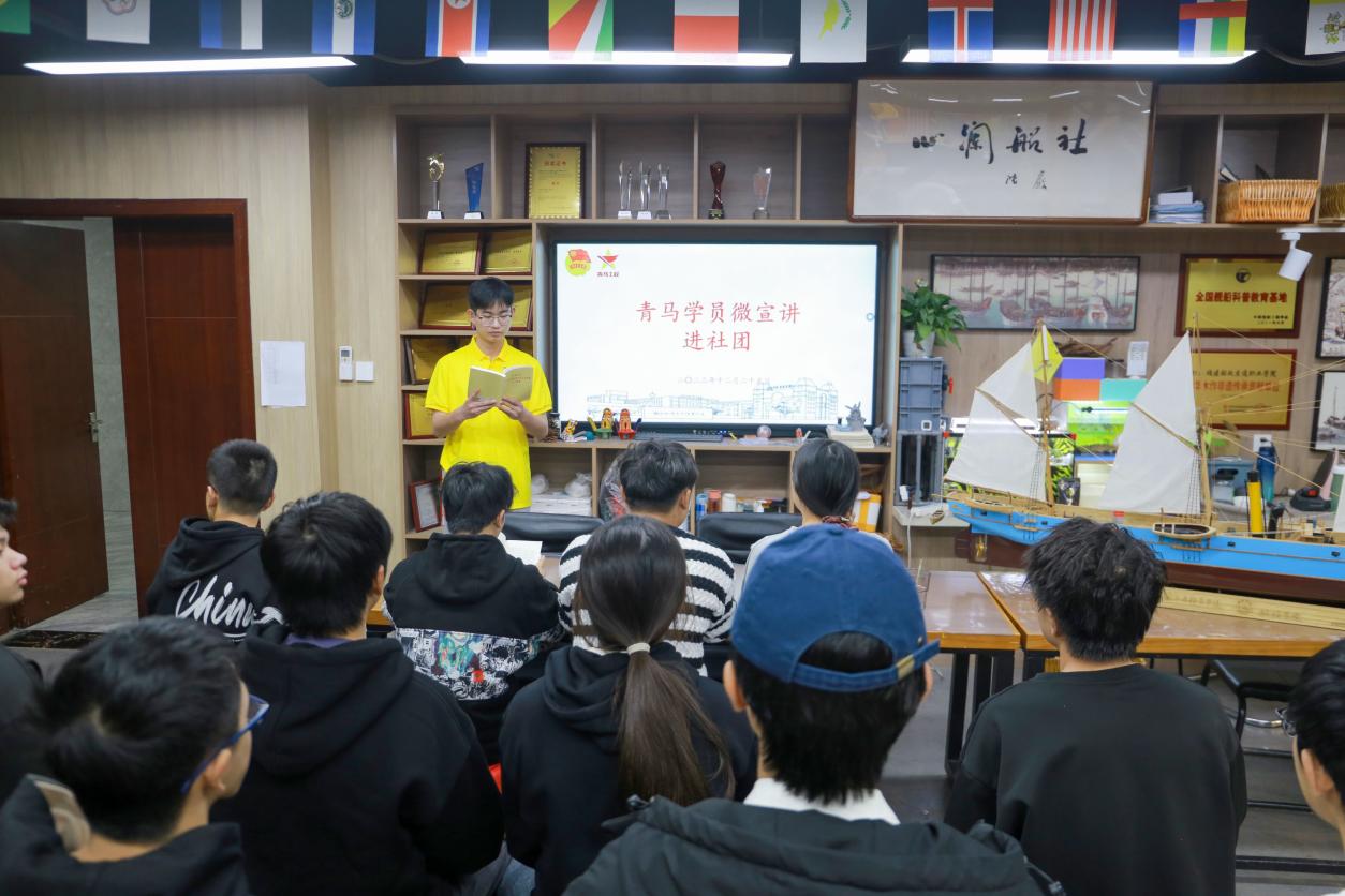 為深入學(xué)習(xí)貫徹習(xí)近平新時(shí)代中國(guó)特色社會(huì)主義思想,充分發(fā)揮青馬學(xué)員示范引領(lǐng)作用,進(jìn)一步學(xué)習(xí)領(lǐng)會(huì)習(xí)近平總書記重要講話精神,讓廣大青年明確自身使命,傳播青馬聲音,匯集青春力量。近期,航海學(xué)院團(tuán)委組織青馬學(xué)員進(jìn)教室、進(jìn)宿舍、進(jìn)社團(tuán)、進(jìn)實(shí)訓(xùn)基地,進(jìn)行“四進(jìn)”宣講。宣講采取“就地講,現(xiàn)場(chǎng)學(xué),共探討”的講學(xué)研模式