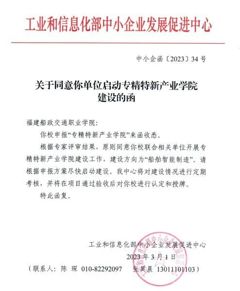 3月1日,工業(yè)和信息化部中小企業(yè)發(fā)展促進(jìn)中心公布首批“專精特新產(chǎn)業(yè)學(xué)院”啟動(dòng)建設(shè)名單,我校申報(bào)“船舶智能制造專精特新產(chǎn)業(yè)學(xué)院”經(jīng)過(guò)歷時(shí)半年的初審、線上考察、專家初評(píng)、專家會(huì)評(píng)等4輪競(jìng)爭(zhēng)性遴選,最終從800多所高校中脫穎而出成功獲批立項(xiàng)建設(shè)。此次“專精特新產(chǎn)業(yè)學(xué)院”獲批建設(shè),標(biāo)志著我校在產(chǎn)教融合校企合作提質(zhì)升級(jí)上又邁出了堅(jiān)實(shí)的步伐。