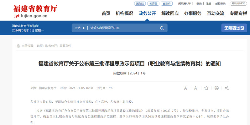 近日,福建省教育廳公布第三批課程思政示范項目(職業(yè)教育與繼續(xù)教育類)名單,我院《國際游輪商品零售服務(wù)》1門課程獲批省級課程思政示范課程。