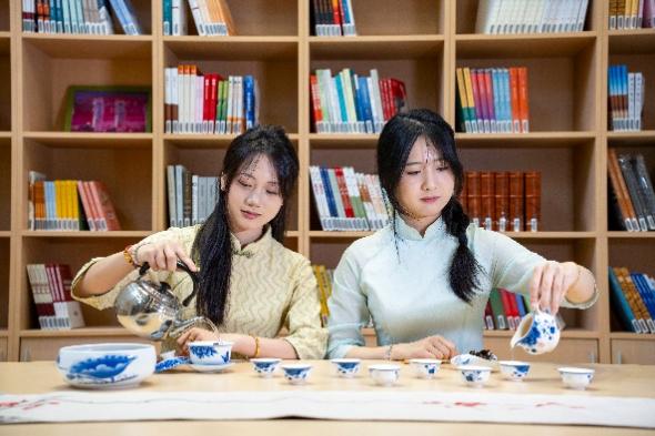 航海學(xué)院為大家打造了一個(gè)愜意舒適的環(huán)境,讓同學(xué)們可以盡情地暢所欲言,分享彼此的故事和想法。在這里,可以了解到茶文化的起源、發(fā)展和傳承,以及茶的種類、制作方法和品鑒技巧等。通過學(xué)習(xí)和交流,同學(xué)們也都能更深入地了解中國的茶文化,感受到茶文化的獨(dú)特魅力。大家也可以品嘗到香濃醇厚的茶水,感受那淡淡的芬芳在舌尖縈繞,仿佛帶大家走進(jìn)了一個(gè)茶香四溢的世外桃源。每一種茶葉都有其獨(dú)特的風(fēng)味和特點(diǎn),如綠茶的清新、紅茶的醇厚、烏龍茶的香氣等,讓大家在品味茶香的同時(shí),也能領(lǐng)略到中國茶文化的博大精深。