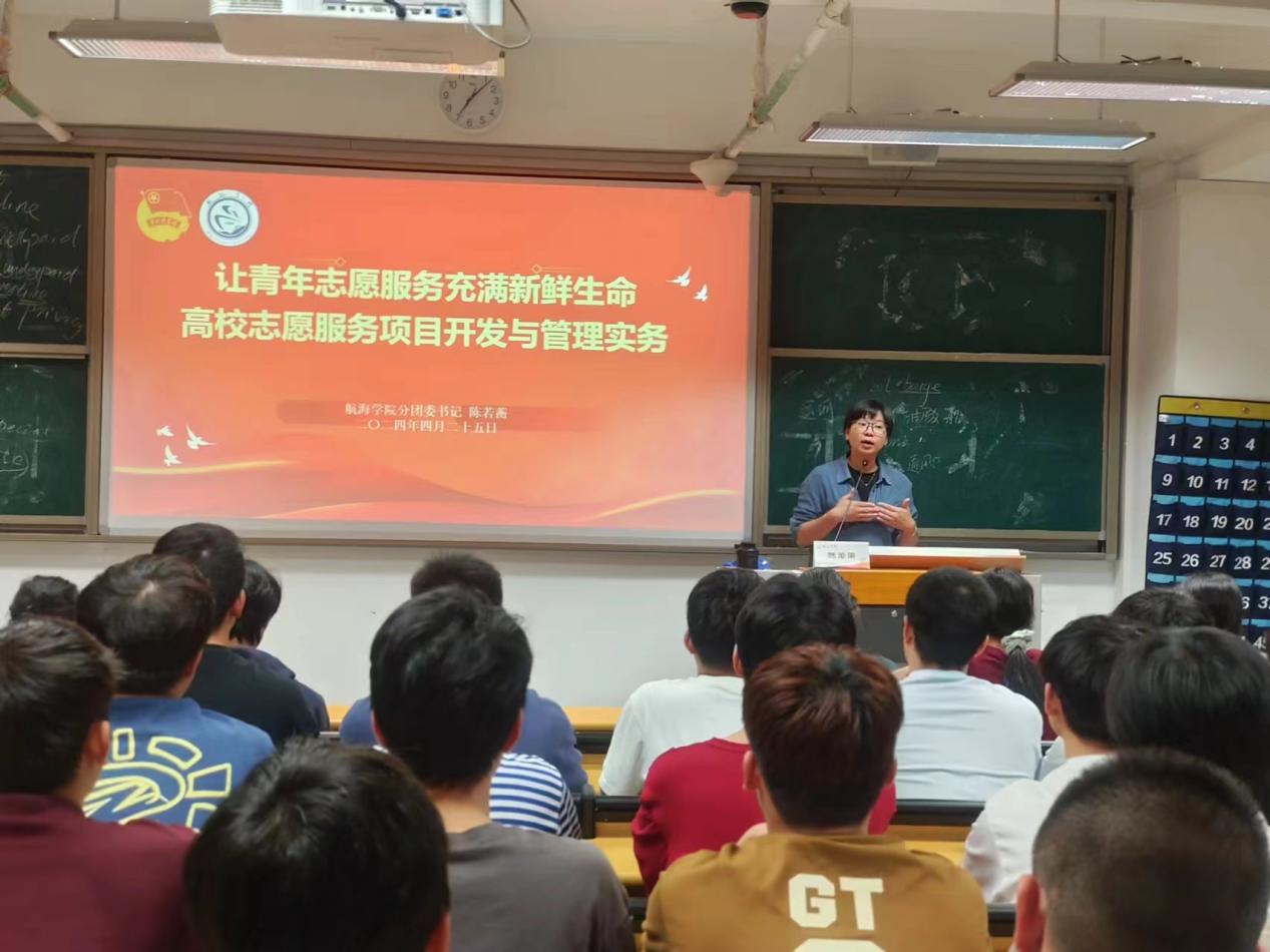 本次開(kāi)班儀式由航海學(xué)院分團(tuán)委書(shū)記陳若蘅老師致詞,并為入團(tuán)積極分子們開(kāi)講團(tuán)校第一課:讓青年志愿服務(wù)充滿新鮮生命高校志愿服務(wù)項(xiàng)目開(kāi)發(fā)與管理實(shí)務(wù)。