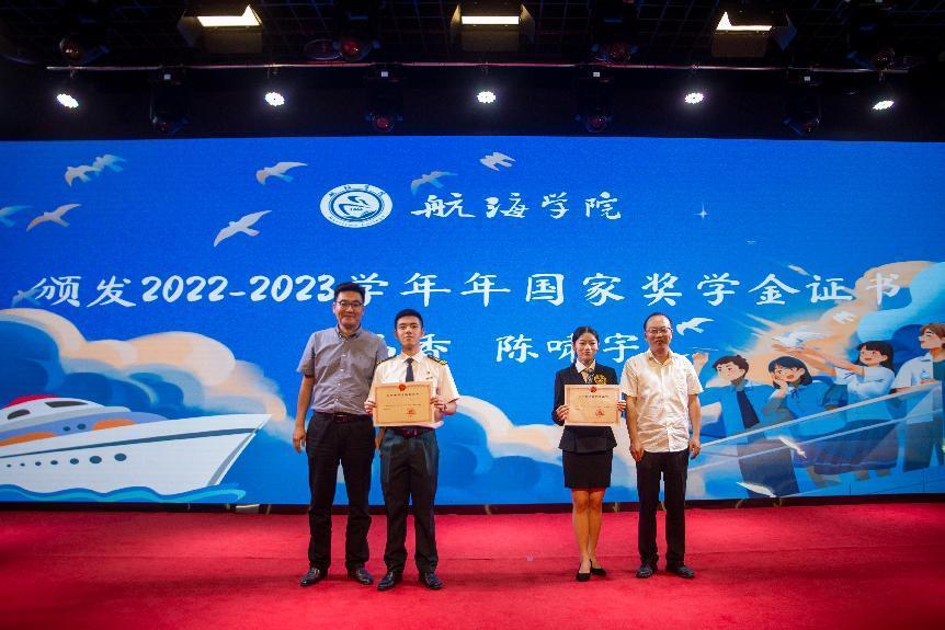 國家獎學(xué)金,是對學(xué)子們勤奮學(xué)習(xí)、全面發(fā)展的最高榮譽(yù)認(rèn)可。它象征著國家對青年才俊的殷切期望,也是對他們不懈努力的最好回報。每一份獎學(xué)金的背后,都凝結(jié)著學(xué)子們無數(shù)個日夜的努力與汗水,是他們用智慧和勤奮譜寫的青春華章?,F(xiàn)場由航海學(xué)院黨總支書記江文與航海學(xué)院院長李翼為2021級國際郵輪乘務(wù)管理4班劉馬香、2021級航海技術(shù)2班陳嘯宇頒獎。