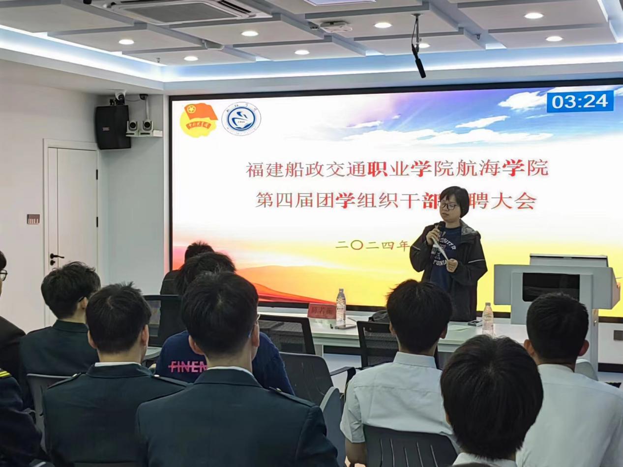 5月16日18:00,航海學(xué)院在藝新樓五高導(dǎo)覽室舉辦了航海學(xué)院第四屆團(tuán)學(xué)干部競(jìng)聘大會(huì)。航海學(xué)院分團(tuán)委書記陳若蘅,分團(tuán)委副書記陳林泉,分團(tuán)委學(xué)生兼職副書記周瑋燁,黃其霖,學(xué)生會(huì)執(zhí)行主席王澤韜及各部門部門長(zhǎng)出席本次大會(huì)。
