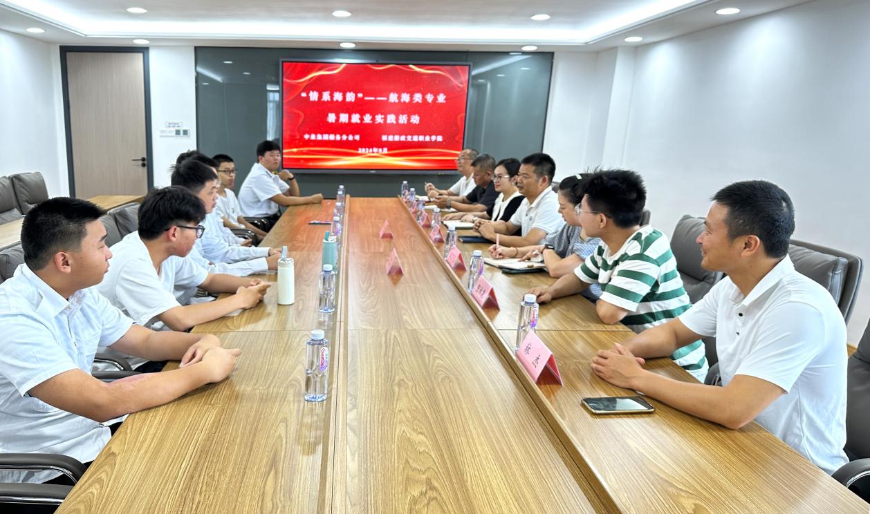 8月9日,福建船政交通職業(yè)學(xué)院“情系海韻”航海類專業(yè)學(xué)生暑期就業(yè)實踐活動隊一行,由航海學(xué)院黨總支副書記朱寶杉、輔導(dǎo)員林杰、陳林泉老師帶隊,攜中泉國際經(jīng)濟技術(shù)合作(集團)有限公司訂單班學(xué)員7人,來到中泉國際經(jīng)濟技術(shù)合作(集團)有限公司進行就業(yè)實踐活動。中泉集團船務(wù)分公司副經(jīng)理莊文顯、王佳妮等熱情的接待了我們。