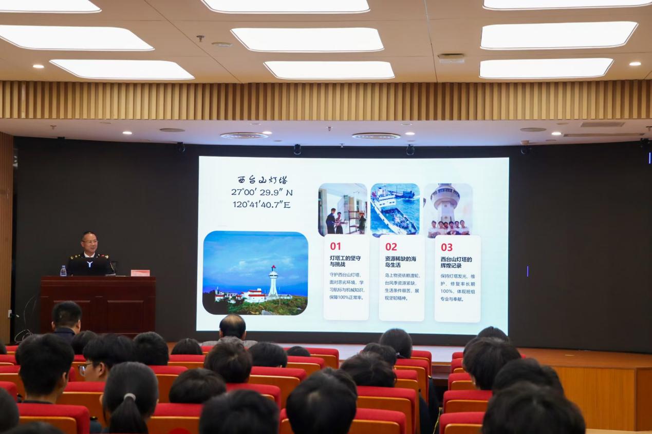 互動結(jié)束后,福州航標(biāo)處馮振剛老師從航海專業(yè)的角度用形象生動的案例向在場觀眾詳細(xì)介紹了航標(biāo)處的運(yùn)作情況。他建議同學(xué)們多找機(jī)會前往航標(biāo)處進(jìn)行實(shí)地參觀學(xué)習(xí),把在課堂上學(xué)到的理論與實(shí)際相結(jié)合,要大力弘揚(yáng)勞模精神、勞動精神、工匠精神,不斷提升自身技術(shù)技能水平,以適應(yīng)科技革命和產(chǎn)業(yè)變革的需要,為實(shí)現(xiàn)中華民族偉大復(fù)興的中國夢貢獻(xiàn)自己的青春力量。