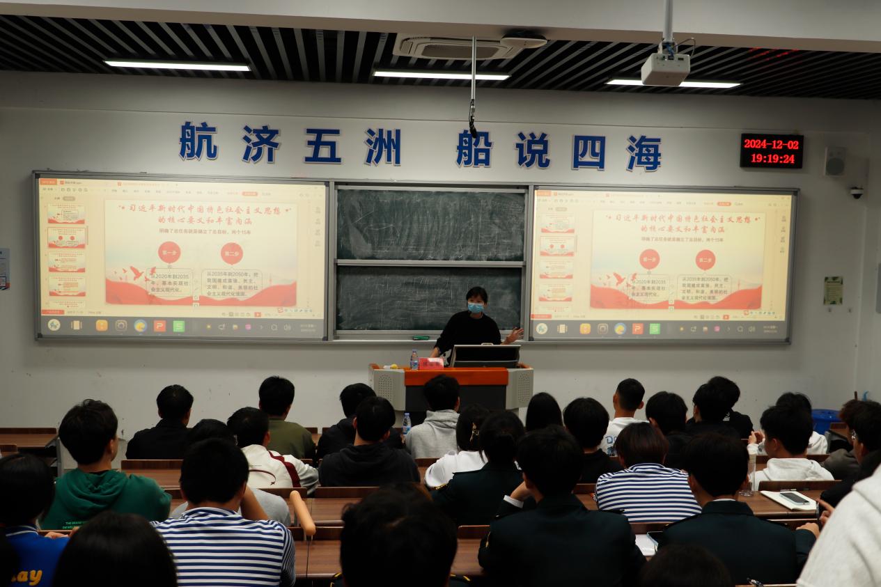 講座伊始,航海學(xué)院分團(tuán)委書(shū)記陳若蘅圍繞習(xí)近平新時(shí)代中國(guó)特色社會(huì)主義思想及歷史意義綜合分析了新時(shí)代青年面臨的經(jīng)濟(jì)、科技、文化等多領(lǐng)域問(wèn)題,指導(dǎo)同學(xué)們認(rèn)清當(dāng)前挑戰(zhàn),加強(qiáng)思想政治教育,鼓勵(lì)同學(xué)們參與社會(huì)實(shí)踐,培養(yǎng)社會(huì)責(zé)任感,以堪當(dāng)大任、矢志復(fù)興,為實(shí)現(xiàn)中華民族偉大復(fù)興的中國(guó)夢(mèng)貢獻(xiàn)力量。