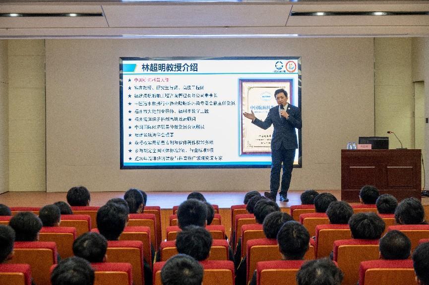 緊接著,林超明先生詳細(xì)介紹了船政學(xué)堂的創(chuàng)辦及其歷史意義。這所近代學(xué)堂培養(yǎng)了無(wú)數(shù)推動(dòng)中國(guó)現(xiàn)代化進(jìn)程的人才,其精神傳承至今。船政文化精神中的民族自強(qiáng)、崇尚科學(xué)等內(nèi)涵,激勵(lì)著現(xiàn)場(chǎng)的大學(xué)生們?cè)谛聲r(shí)代勇?lián)姑.?dāng)代船政青年學(xué)子作為新時(shí)代的主力軍,肩負(fù)著實(shí)現(xiàn)中華民族偉大復(fù)興的歷史重任。在海洋強(qiáng)國(guó)戰(zhàn)略的大背景下,弘揚(yáng)船政文化對(duì)于船政學(xué)子而言意義非凡。它不僅是對(duì)歷史文化的傳承,更是激勵(lì)大學(xué)生們?cè)诳萍紕?chuàng)新、海洋探索、文化交流等領(lǐng)域不斷進(jìn)取的精神動(dòng)力。