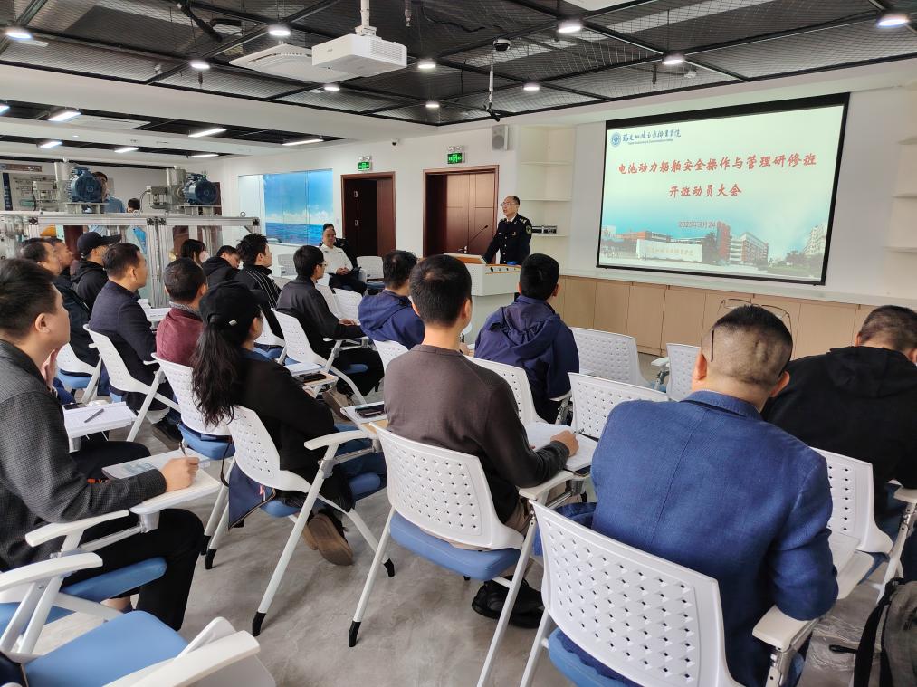 3月24日,福建省首期校企合作全鏈條電池動(dòng)力船舶船員培訓(xùn)班在我校正式開(kāi)班,來(lái)自沿海和內(nèi)河的20名航運(yùn)企業(yè)學(xué)員參加電池動(dòng)力船舶船員基本培訓(xùn)。福州海事局副局長(zhǎng)鄭俊義、福州市水路運(yùn)輸事業(yè)發(fā)展中心副主任林鄭峰蒞臨開(kāi)班動(dòng)員大會(huì)并致辭,航海學(xué)院院長(zhǎng)李翼主持開(kāi)班儀式。本次培訓(xùn)班在福建海事局、福州海事局和福州市水路運(yùn)輸事業(yè)發(fā)展中心指導(dǎo)推動(dòng)下,實(shí)現(xiàn)了我省電池動(dòng)力船舶船員培養(yǎng)從政策框架向標(biāo)準(zhǔn)化落地的標(biāo)志性跨越。